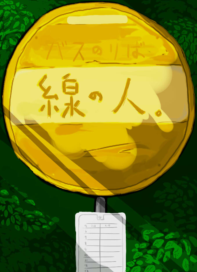 バス停ですね。。なんか最近有機物より無機物のほうが描いていて